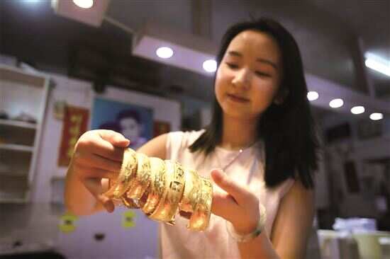 ■阿丽的嫁妆。广东传统婚俗中,新娘出嫁时会佩戴大量金饰,象征“情比金坚”。 |