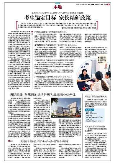 5月10日,新快报“阳光中考·区动力”人气高中咨询会第六站来到黄埔区与考生、家长见面。作为今年中考志愿填报政策出炉后的首场咨询会,现场招生老师、志愿填报分析专家为家长解读了中考政策最新变化。除此