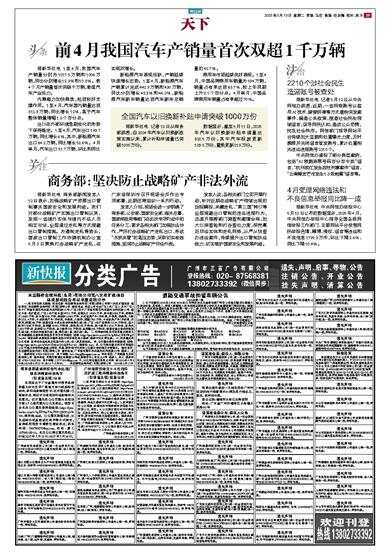 据新华社电 1至4月,我国汽车产销量分别为1017.5万辆和1006万辆,同比分别增长12.9%和10.8%。前4个月产销量首次突破千万辆,彰显汽车产业活力。 内需潜力加快释放,起到较好支