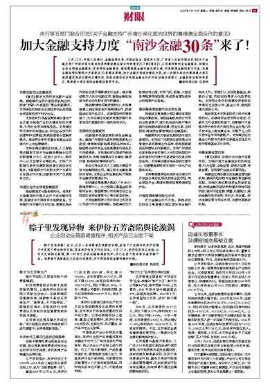 央行等五部门联合印发《关于金融支持广州南沙深化面向世界的粤港澳全面合作的意见》 5月12日,中国人民银行、金融监管总局、中国证监会、国家外汇局、广东省人民政府联合发布《关于金融支持广州南沙