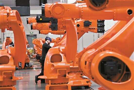 ■广东佛山市美的库卡智能制造科技园拍摄的工业机器人产线车间(资料图)。 新华社发 |