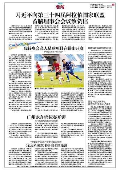 广东队收获“开门红” 新快报讯 记者高京报道 5月17日上午,全国第十二届残疾人运动会暨第九届特殊奥林匹克运动会聋人足球项目(十一人制男子组)在佛山市南海体育中心开幕。来自全国12支代表