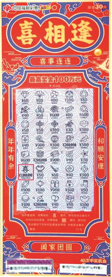 新快报讯 记者陆妍思 通讯员袁苏华报道 近日,佛山彩市接连传出刮刮乐中奖喜讯,三位幸运彩民分别刮出“好运十倍”40万元、“喜相逢”(面值30元)100万元、“喜相逢”(面值50元)100万元大奖,在收获中奖惊喜的同时,也为公益事业注入了温暖力量。 “好运十倍”40万元得主: 培训提升自我 李女士(化姓)在佛山市44130523福彩销售站点购买了5张“好运十倍”刮刮乐即开票开刮,幸运刮出一等奖40万元。李女士表示,她一直热心参与公益,将购买福利彩票视为传递爱心的方式之一。“做公益是快乐的,幸运中奖更让我感受到双倍的快乐,计划用中奖奖金报名技能培训课程提升自我,今后会继续支持福彩公益事业。”李女士笑着说。 “喜相逢30元”100万元得主: 掐了自己好几下 “喜相逢”(面值30元)100万元得主胡女士(化姓)兑奖时透露,中奖当天,她路过佛山市44130075福彩销售站点,进店买了3张“喜相逢”刮刮乐即开票玩一玩,没想到惊喜刮出100万元。据胡女士介绍,当她刮开覆盖膜看到“¥1,000,000”时,激动不已!“我反复确认了几遍,掐了自己好几下,不敢相信幸运突然降临!”谈及中奖奖金使用规划,胡女士表示:打算拿出一部分用于旅游,其余的存入银行以备不时之需。以后会继续购彩做公益,让生活中多一份幸运期待。 “喜相逢50元”100万得主: 随手公益收获惊喜 而王先生(化姓)则在佛山市44130622福彩销售站点购买了2张“喜相逢”刮刮乐即开票(面值50元),幸运刮出一等奖100万元。王先生表示,自己是一名资深购彩者,购彩就当随手公益。“参与公益在我看来是非常有意义的事,没想到这份公益初心带给我百万大奖,太幸运了!”王先生计划把奖金用于孩子的教育培养和父母的养老保障,守护家庭,创造更好的未来。 中刮刮乐赢快乐8! 680万元福彩体验券活动进行中 提醒各位购彩者的是,目前由广东省福利彩票发行中心推出的“幸运刮刮刮,一起快乐8”融合推广营销活动正在进行中。 活动期间,凡购买广东省(不含深圳)刮刮乐即开票中得20元及以上(含20元)奖级且在2025年5月8日0时后通过即开票终端设备兑奖的中奖者,通过“广东福彩”微信公众号参与抽奖活动,有机会获得“快乐8”游戏“选四玩法5个号码复式”福彩体验券和“选九玩法10个号码复式”福彩体验券。活动计划通过抽奖发放64.4万张福彩体验券、总计680万元,按照中奖者实际兑换情况据实结算。 刮刮乐凭着玩法简单、即刮即中、返奖率高等优势,成为年轻人的新选择。随手一刮,梦想未必开花,但您购买的每张福利彩票,都是为社会福利和公益事业贡献力量。福彩刮刮乐公益金提取比例是20%,也就是说,一张20元的福彩刮刮乐,就有4元拨入福彩公益金。筹集到的公益金,被广泛用于“扶老、助残、救孤、济困”等公益领域。