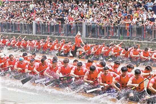 ■5月26日上午,广州天河车陂村2025年端午龙舟赛激情开赛,车陂涌两旁人头攒动。新快报记者 邓迪/摄 |