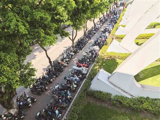 ■地铁坑口站附近停满了电动自行车。 新快报记者 郭思杰/摄 |