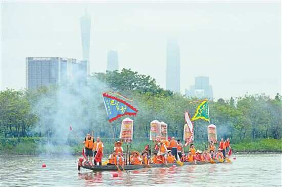 ■5月30日,石榴岗河段迎来近40个村社的龙舟队,延续村社间联络感情、增进友谊的古老传统。