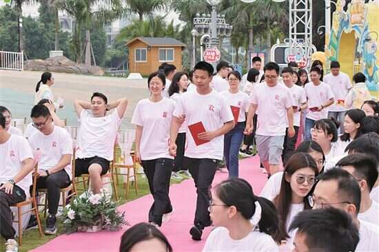 新快报讯 记者陆妍思 通讯员黄丽娜报道 5月25日,由共青团中山市委员会、市民政局、市自然资源局、市妇联共同主办的“牵手团缘·青春偕进”集体婚礼暨“结婚种棵树”主题活动在中山欢乐海岸奇遇时光乐园和沙咀公园成功举办。作为承办单位之一,中山福彩为50对新人送上美好祝福,同时通过此次集体婚礼积极倡导简约绿色婚俗新风,传播“公益、慈善、健康、快乐、创新”的福彩文化。 活动现场,50对佳偶身穿洋溢青春气息的情侣服,在亲友与嘉宾的见证下宣读爱的誓言,接受结婚证书与祝福。中山福彩特别为每对新人送上“喜相逢”刮刮乐即开票,以“祝福+公益”的形式为婚礼增添欢乐气氛。新人们手持寓意美好的“喜相逢”刮刮乐即开票,体验公益福彩的乐趣,了解“公益、慈善、健康、快乐、创新”的福彩文化。 婚礼仪式后,新人们移步岐江畔的沙咀公园,携手共种象征爱情与责任的小树苗。新人们默契配合,挥锹培土、浇水灌溉、悬挂心愿牌……一片新绿迎风起舞,同心林生机勃勃,既代表着对婚姻“同心同德、百年好合”的祝愿,也为“绿美中山”生态建设贡献了力量。 参与活动的新人表示:“婚礼与植树活动结合,既热烈又环保,也是履行社会责任,很美好又很有意义!” 中山福彩始终秉持福利彩票“扶老、助残、救孤、济困”发行宗旨,通过集体婚礼宣传公益福彩,向新人们表达美好的祝福,传递福彩公益文化。同时,借助“结婚种棵树”主题,倡导绿色低碳的婚俗新风,助力生态建设、践行福彩公益理念和社会责任。