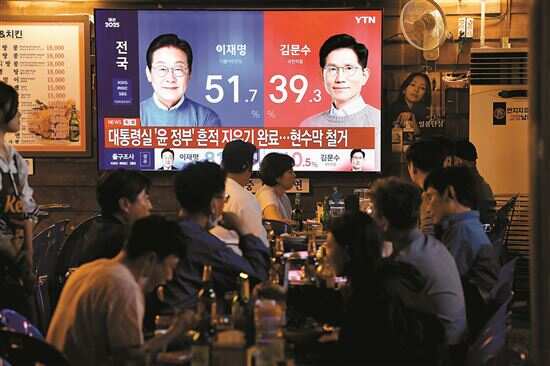 ■6月3日,民众在韩国首尔一家餐厅内观看总统选举开票直播。新华社发 |