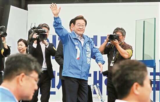 ▲6月2日,韩国共同民主党候选人李在明在首尔参加竞选活动。新华社发 |