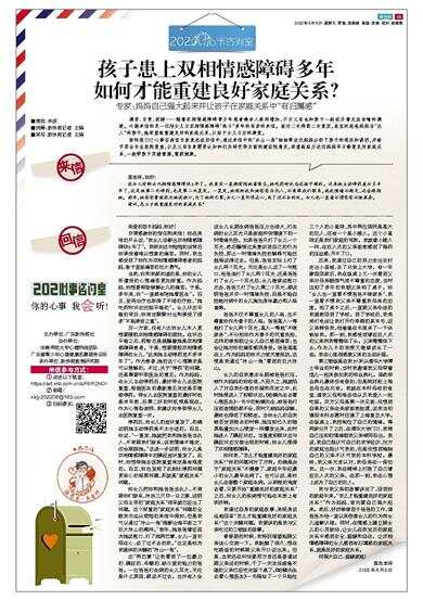 孩子患上双相情感障碍多年 如何才能重建良好家庭关系?