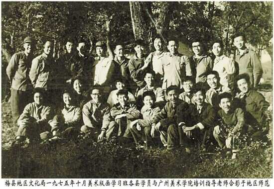 在高考之前,吴卫光参加广州美术学院教师组织的梅州群众美术创作班照片。 |
