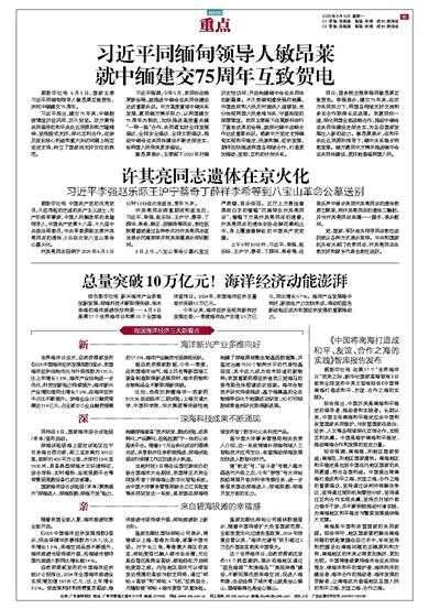 综合新华社电 新兴海洋产业多维创新发展、深海科技不断取得突破、亲水亲海的海洋旅游欣欣向荣……6月8日是第17个世界海洋日和第18个全国海洋宣传日。2024年,我国海洋经济总量首次突破10万亿元。