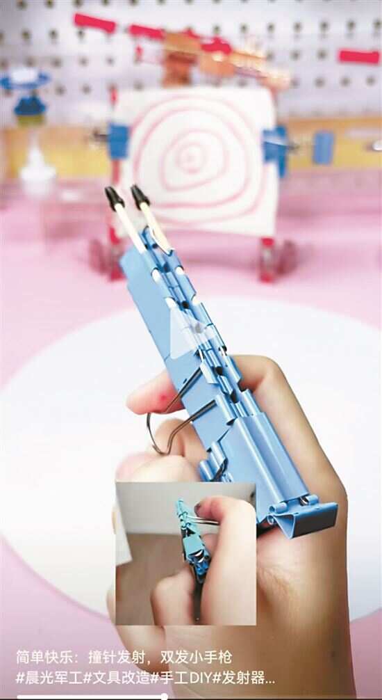 短视频平台上,中性笔改造“狙击枪”的教学视频。视频截图 |