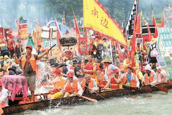 墩头老龙、泮塘凸眼龙“神仙打架”,两岸观众疯狂打call 新快报讯 记者谢源源 通讯员荔宣报道 鼓点激越,水花飞溅!6月14日,在承载着厚重岭南文脉的广州市荔湾区花地河畔(百花路至穗盐桥段),“花城春天·龙腾花地”2025年“力诚·诚汇新都杯”端午游龙活动如期上演。500米水道上21条龙舟争先恐后,两岸人潮涌动,欢呼声、呐喊声与铿锵鼓乐交织轰鸣,绘就了一幅动感十足、风情浓郁的岭南民俗画卷。 今年游龙阵容堪称“顶配”,看点十足。备受瞩目的“网红龙舟”——广佛地区最古老的墩头老龙、与南海盐步结契的“契仔”泮塘凸眼龙,以及荔湾区茶滘、坑口、南漖等传统龙舟队悉数登场。 当天10时,随着“力诚号”龙舟从穗盐桥起点率先出发,一场古老而充满生机的“散龙膥”仪式在花地河上演,海中女子龙舟队、荔湾消防·海龙围龙舟队紧随其后一同亮相,为本次游龙活动拉开帷幕。“力诚号”龙舟上的队员将象征福寿安康的三华李抛向两岸热情的观众,寓意着接福纳祥。 授旗仪式后,龙舟巡游正式开始。精心装饰的21条龙舟围绕“乡村振兴”“舌尖荔湾”“非遗传承”“高质量发展”四大主题争相竞艳。龙舟上的队员们身着统一服装,划桨动作整齐划一,喊着整齐的口号,如蛟龙逐浪,展现出高度的团队协作和顽强的拼搏精神。河岸上,观众们热情高涨,或挥舞彩旗,或高举手机记录精彩瞬间,为龙舟健儿们呐喊助威,将现场气氛推向高潮。 经过激烈角逐,五眼桥龙船队凭借精彩绝伦的技艺与出色的团队配合斩获“最佳风采奖”;沙洛联社龙船会1号船、龙溪凤池村龙舟队以其独特的活力展示获得“活力风尚奖”;其余龙船队均获得“精神文明奖”。获奖队伍在热烈的掌声与欢呼声中接过象征荣誉的锦旗、奖杯与金猪,喜悦之情溢于言表。 颁奖礼成,温情延续,各龙舟队伍在花地河上进行了传统的“注水礼”。龙舟队员们互相泼洒河水,以水为媒,传递着对彼此的祝福与友谊。