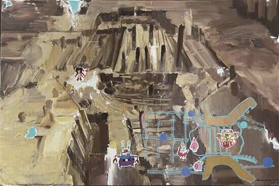 《搜索小分队》 黄伟鸿+黄以念(6岁) 综合材料(布面丙烯、拼贴等) |