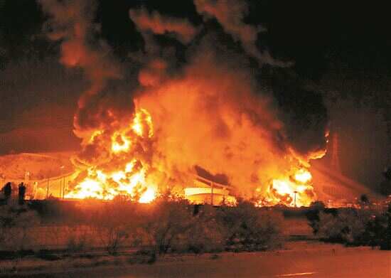 ■这是6月15日凌晨拍摄的伊朗首都德黑兰附近遭以色列袭击起火的储油设施。新华社发 |
