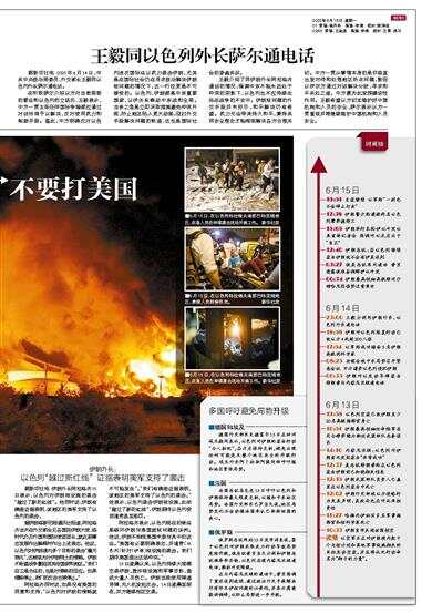 伊朗外长:以色列“越过新红线” 证据表明美军支持了袭击 据新华社电 伊朗外长阿拉格齐15日表示,以色列对伊朗核设施的袭击“越过了新的红线”。他同时说,伊朗有确凿证据表明,该地区的美军支持了以色列的袭击。 据伊朗塔斯尼姆通讯社报道,阿拉格齐当天在外交部会见各国驻伊朗大使、临时代办及外国和国际使团团长,就近期事态发展作出解释时作出上述表态。他说,以色列对伊朗境内多个目标的袭击“毫无预兆”,这被视为对伊朗领土的侵略。伊朗不希望战争蔓延到其他国家和地区。“我们自卫是合法的,也是对侵略的回应。如果侵略停止,我们的反击也将停止。” 阿拉格齐同时说,如果没有美国的同意和支持,“以色列对伊朗的侵略就不可能发生”。“我们有确凿证据表明,该地区的美军支持了以色列的袭击。”他表示,以色列袭击伊朗核设施,此举“越过了新的红线”,伊朗期待以色列受到谴责甚至惩罚。 阿拉格齐表示,以色列现在的做法是破坏伊朗与美国就核问题的谈判。他说,伊朗不相信美国未参与其中的说法。“美国有必要明确表态,并谴责(以色列)针对(伊朗)核设施的袭击。我们期待美国退出这场冲突。” 13日凌晨以来,以色列持续大规模空袭伊朗,轰炸核设施和军事目标,造成大量人员伤亡。伊朗当晚使用弹道导弹、无人机发起反击。14日凌晨至深夜,双方继续相互空袭。 多国呼吁避免局势升级 ■德国和埃及 德国外交部长瓦德富尔13日在访问埃及期间表示,以色列对伊朗的袭击行动“令人担忧”,各方应保持克制,避免出现任何可能危及整个地区安全的升级行动。埃及外长阿卜杜勒阿提同样呼吁缓和地区紧张局势。 ■法国 法国总统马克龙13日呼吁以色列和伊朗保持最大限度克制,以缓和中东地区局势。法国外交部长巴罗当天说,地区局势变化不会动摇法国承认巴勒斯坦国的决心。 ■俄罗斯 俄罗斯总统网站13日发布消息说,鉴于以色列对伊朗采取武力行动导致局势危险升级,俄总统普京当天分别和伊朗总统佩泽希齐扬、以色列总理内塔尼亚胡通电话,推动冲突降级。 在与内塔尼亚胡的通话中,普京强调了重返谈判进程、通过政治外交手段解决所有涉及伊核问题的必要性,并表示愿意提供调停,以防止局势进一步升级。 时间轴 6月15日 19:51 互袭继续 以军称“一刻也不会停止打击” 17:38 伊朗警方称逮捕两名以色列摩萨德特工 15:05 伊朗举行本轮伊以冲突以来首场记者会 强调对以反应出于“自卫” 12:40 伊朗总统:若以色列继续袭击伊朗就不会有伊美谈判 03:27 俄美总统再次通话 普京透露俄准备调解伊以冲突 00:34 伊朗最高领袖高级顾问沙姆哈尼因伤势过重离世 6月14日 23:00 王毅分别同伊朗外长、以色列外长通电话 18:58 伊朗对以色列报复行动已致以方4死超200人伤 17:54 以军称成功暗杀9名伊朗高级别科学家 08:25 安理会就中东局势召开紧急会议 中方谴责以色列侵犯伊朗 06:35 伊朗对以发动导弹袭击 特朗普与内塔尼亚胡通电话 6月13日 19:58 以色列空袭已致伊朗至少20名高级指挥官身亡 16:51 伊朗最高领袖任命陆军总司令穆萨维为新任武装部队总参谋长 14:10 内塔尼亚胡:以色列对伊朗首次突然袭击“非常成功” 12:37 美总统特朗普称在以色列袭击伊朗前已知晓相关信息 12:15 伊朗武装部队负责人巴盖里在以色列袭击中死亡 12:02 伊朗外交部就以方侵略行为发表声明:美政府也应对此承担责任 11:27 哈梅内伊证实多名军事指挥官和核科学家死亡 10:33 伊朗宣布关闭该国领空 凌晨 以空军正在对伊朗境内数十个与核计划和其他军事设施相关的目标发动空袭,并且将此次行动命名为“狮子的力量”。