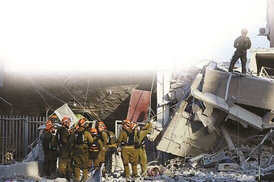 ■6月16日,在以色列布内布拉克,应急和救援人员在一处导弹袭击现场开展工作。新华社发 |