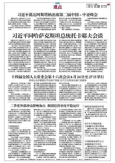 据新华社电 当地时间6月16日下午,哈萨克斯坦总统托卡耶夫同中国国家主席习近平在阿斯塔纳总统府举行会谈。 习近平指出,中哈关系历经国际风云变幻的考验,始终保持高水平运行,这得益于山水相连的
