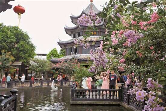 2025年余荫山房紫薇文化旅游季启幕 新快报讯 记者谢源源 通讯员付玲艳报道 盛夏之际,广东四大名园之一余荫山房内各色紫薇花错落盛开,与古朴典雅的园林建筑交相辉映,宛如一幅栩栩如生的天然画卷,缓缓在游客眼前展开。6月22日,“花漾余荫 紫薇雅韵”2025年余荫山房紫薇文化旅游季启幕,此次活动将一直延续至8月31日,其间推出紫薇园艺展、碗莲展、紫薇文化体验等系列精彩纷呈的文化活动,以紫薇为媒,让游客感受余荫山房独特的岭南园林景观与深厚历史文化底蕴。 开幕式期间,杯花舞《紫薇馨语》、配乐诗朗诵《紫薇花开・山房有约》等创意十足且颇具特色的节目接连登场,为观众呈现了一场视听盛宴。 紫薇园艺展与碗莲展作为每年紫薇季的重头戏,吸引了众多游客的目光。今年在延续传统的同时,以新的展示形式,为游客带来更好的观赏体验。