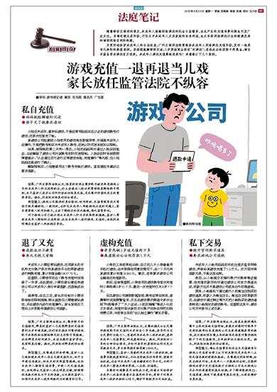 游戏充值一退再退当儿戏 家长放任监管法院不纵容