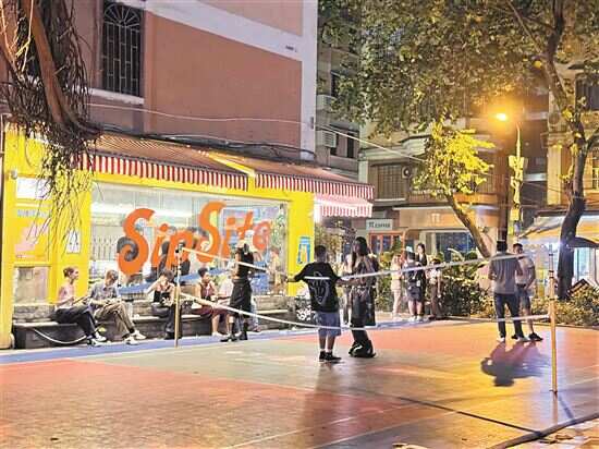 ■6月20日晚11时50分,“SipSite 幸福・酒吧”门前有多人饮酒聊天。 |