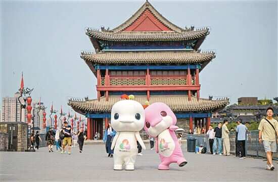 十五运·十五城西安站落幕 新快报讯 记者高京报道 别具匠心的城市地标灯光秀互动,富有文化特色的现场演出,备受热捧的吉祥物合影打卡……刚刚过去的周末,十五运·十五城西安站活动顺利举行。因为全运会,西安和广州的联接更加温馨而紧密。 为了迎接十五运会,西安奥体中心特别献上灯光秀。在场馆红色的底色上,出现一行给十五运的祝福语:全运接“荔”,情满长安。肉夹馍喊话荔枝鲜,十五运顺顺“荔荔”,圆圆满满。 在活动中,十五运会吉祥物“喜洋洋”和“乐融融”出现在西安永宁门城墙上(见右图,主办方供图),吸引了很多游客和市民前来合影互动。