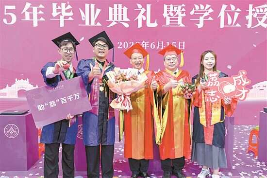 高校毕业季,别具心思的礼物和师长们一句句深情寄语,让毕业生们感动不已…… 定制刻有毕业生姓名学号的专属校徽;送上“敢作敢为”露营椅,陪毕业生勇闯江湖;以母校科技含量满分的荔枝花束和荔枝包送上顺顺“荔荔”的毕业祝福;办“毕业午宴”邀毕业生共赴青春“家宴”;校长送Labubu盲盒当毕业礼物,寄语勇敢做“不被定义”的自己……近日,华农、中大、深大、广大、广科大等多所高校先后举办毕业典礼,别具心思的毕业礼物和师长们一句句深情的寄语,让毕业生们感动不已,也让不少人感慨“自己的毕业生自己宠”“这届毕业典礼太秀了”。 ■统筹:新快报记者 徐绍娜 ■采写:新快报记者 王娟 徐绍娜 实习生 张韫婕 梁敏怡 ■图片:受访者供图 中山大学 毕业生集体致谢 校长送解锁未来的“万能钥匙” 中山大学2025届毕业典礼暨2025年学位授予仪式于近日举行,18000余名中山大学毕业生将从母校启航,奔赴人生的下一段精彩。在这个被毕业生称为“最后一堂课”的特殊时刻,师长的殷殷叮咛,毕业生的集体暖心致谢,温馨而庄重的仪式给所有人留下了深刻而美好的回忆。 面对未来,同学们应当做些什么?典礼现场,中山大学校长高松抛出这个引人深思的问题,并分享了他心目中能够解题的三把“万能钥匙”。他寄语同学们,要保持好奇心,以开放视野观照未知,既能用专业视角观察世界,又能以跨学科思维破解难题;要坚持创新创造,勇于开创“年轻的事业”,在未来面对“卡脖子”技术攻关时,能够激发出“敢为天下先”的气魄,在解决实际问题的行动中实现创新创造;要赤诚挺膺担当,以家国情怀锚定方向,能始终牢记中大人勇于担当的赤诚之心。 中山大学党委书记朱孔军作为一名老中大人,也以老师和师兄的双重身份,围绕“担当”主题亲切寄语毕业生,希望中大学子能够永葆求学时的赤子之心,坚守本心、不媚世俗,把对时代使命的热忱化作投身社会实践的脚步,在每一个平凡坐标,以不平凡的坚守,写下无愧于“中大人”的人生注脚。 深圳大学 赠“敢作敢为”露营椅 ●校长表白:明天依然爱你们 深圳大学2025年毕业典礼日前在该校粤海校区举行,万余名毕业生与亲朋好友一同见证这个充满收获与希望的时刻,祝愿毕业生们在未来的人生中找到属于自己的“位置”,敢“坐”敢为。 “我知道你们最后的选择,那应该是明天依然爱深大。我相信你们也一定知道母校的选择,那当然是明天依然爱你们。”毕业典礼上,深圳大学校长毛军发以《明天你是否依然爱我》为题致辞。他向毕业生们描绘了明天的深大,也向即将远行的毕业生们提出三点希望:“母校希望你们有情怀,有情调,有情趣,能够给社会带来美好、给家人带来幸福、给朋友带来欢乐。” 今年深圳大学还为毕业生准备了一把“敢作敢为”的露营椅当毕业礼物。毛军发说:“就是既要你们在人生的旷野中奋力探索,又要你们在生活的别处张弛有度。在‘卷赢’与‘躺平’之间,永远有一件深大神器与你不离不弃。” 华南农业大学 定制专属绶带、荔枝花束 祝毕业生顺顺“荔荔” 华南农业大学2025年毕业典礼暨学位授予仪式已于日前举行,共有1.2万余名华农学子顺利毕业。 毕业典礼上,华南农业大学校长薛红卫围绕“勇毅开拓,破界成长”主题寄语学子,鼓励同学们勇敢挑战未知,实现自我、超越自我,“人工智能再如何深度思考,也回答不了每个人对人生的规划和成长的定义。成功从不是流水线出产的标准件,这世界上也没有任何一种算法能算出你的独特光彩。” 毕业典礼开场,校领导和各学院老师们在毕业MV中集体献唱,被同学们戏称为“行走的参考文献唱歌了”;“星海”“稻浪”浪漫互动、热情奔放的夺金拉丁舞、青春气息十足的歌舞串烧等轮番上演,气氛十足;“百优毕业生”代表向父母献上鲜花与拥抱,感谢父母养育之恩,现场温情满满。 学校还为每位毕业生定制了专属绶带,以三种不同颜色代表本科生、硕士研究生和博士研究生,绶带上印有毕业生姓名,作为独一无二的毕业纪念。 学位授予仪式现场,硕士毕业生杜悦阳、张铭桂与果树学博士毕业生胡慧敏拎着“荔枝包”、手捧荔枝花束上台,与老师们合影。“荔枝是岭南的佳果,也代表了我们知农爱农的情怀。”林业(观赏园艺学方向)专业2022届校友、兽医学院辅导员李坤阳参与了“荔枝包”和荔枝捧花的制作,他表示:“这些荔枝都是从学校的果园基地采摘的,希望通过这种方式,祝师弟师妹们顺顺‘荔荔’,前程似锦。” 广州大学 定制专属校徽和校训书签 ●书记寄语:“未来已来路在脚下” 广州大学2025届毕业典礼暨学位授予仪式已于近日举行,以充满温情和创意的盛会,为该校6921名本科生和2947名研究生的校园时光画上圆满句号。 在学位授予环节上,毕业生与该校党委书记欧阳谦共同打出“欢迎报考广州大学”的横幅,向母校致以别样告白。学位授予时花式“比心”的温馨瞬间,展现出了师生间的深厚情谊。 值得一提的是,学校还为全体毕业生准备了定制专属校徽和“博学笃行”校训金属书签,校徽背面刻有每位毕业生的姓名与学号,将“GZHUer”的身份烙印永久留存。同时推出的“金鸡报喜”“牛气冲天”等免费祝福套餐,则以寓意美好的餐食为毕业生送上舌尖上的祝福,让他们在奔赴前程时仍能感受到母校的贴心关怀。 “未来已来