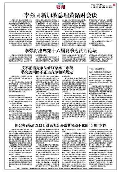 据新华社电 国务院台办发言人陈斌华23日答记者问表示,赖清德22日的讲话充斥着谎言与欺骗、敌意与挑衅,刻意曲解、割裂历史,大肆兜售“台独”分裂谬论,妄图为其建构“台独”论述炮制拼凑依据,为其推动