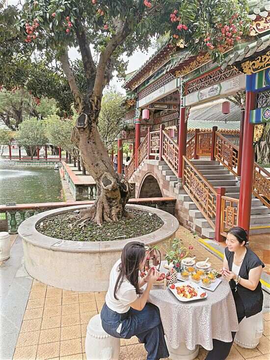 ■食客在宝墨园品尝鲜做荔枝宴。 |