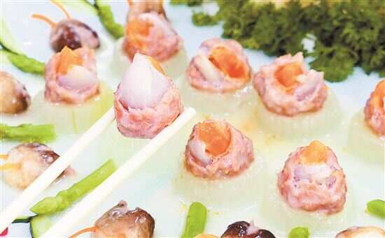 ■番禺宾馆的“金丝荔枝球”菜式。 |