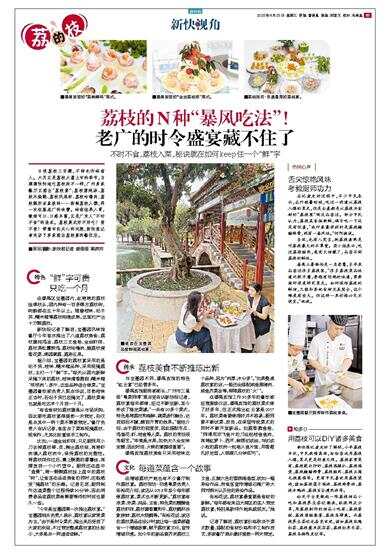 不时不食,荔枝入菜,秘诀就在如何keep住一个“鲜”字 日啖荔枝三百颗,不辞长作岭南人。六月正是荔枝大量上市的季节,与痛痛快快地吃荔枝肉不一样,广州多家餐厅正推出“荔枝宴”:荔枝菌炖汤、荔