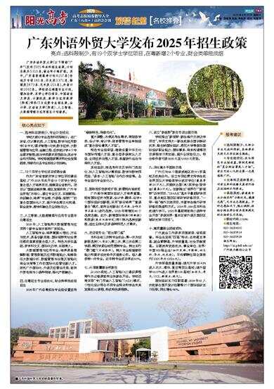 亮点:选科限制少,有19个双学士学位项目,在粤新增2个专业,财会类单独成组 广东外语外贸大学(以下简称“广外”)发布2025年本科招生政策,计划总数为5310名,较去年小幅扩招。其中,广东