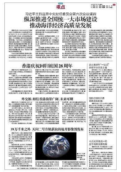 据新华社电 中共中央总书记、国家主席、中央军委主席、中央财经委员会主任习近平7月1日上午主持召开中央财经委员会第六次会议,研究纵深推进全国统一大市场建设、海洋经济高质量发展等问题。习近平在会上发