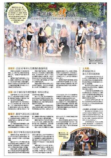 法国核电站停运、土耳其野火肆虐、韩国经历“热带夜”…… 据新华社电 新一轮热浪正“烤”验着北半球:法国核电站被迫停运、土耳其林火肆虐逾5万人疏散、韩国经历今年首个“热带夜”……在西班牙经历