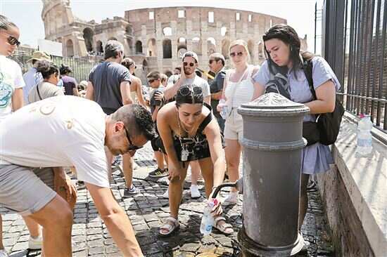 ■意大利罗马,人们在斗兽场附近一处饮水泉取水。新华社发 |
