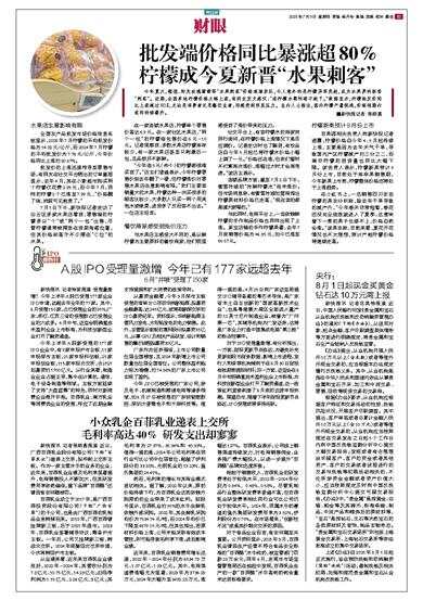 批发端价格同比暴涨超80% 柠檬成今夏新晋“水果刺客”