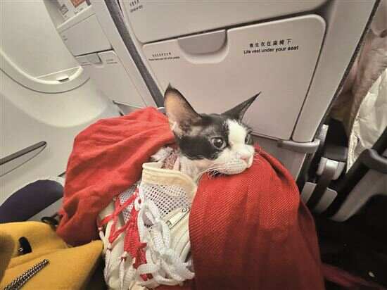 ■阿慧今年1月带宠物猫“年年”一起坐飞机。 |