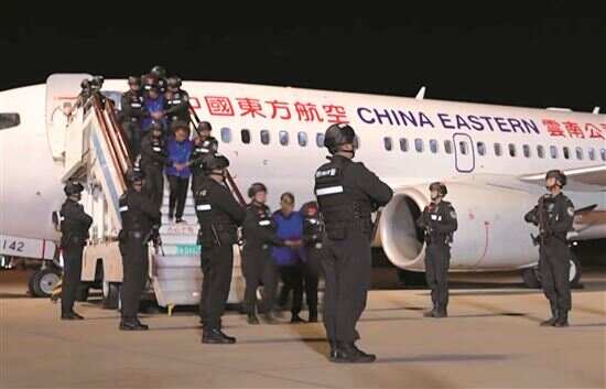 ■白所成等犯罪嫌疑人被押解至中国。 |