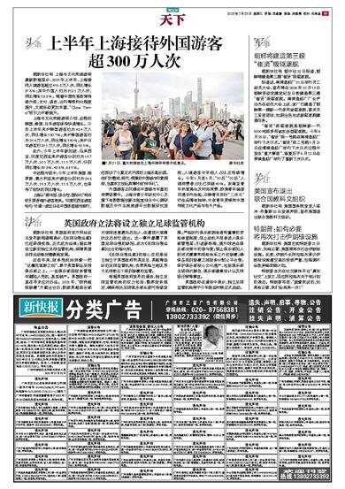 据新华社电 上海市文化和旅游局最新数据显示,2025年上半年,上海接待入境游客超过415.8万人次,同比增长37.6%;其中外国人约为312.1万人次,同比增长53.3%。随着中国免签政策持续升