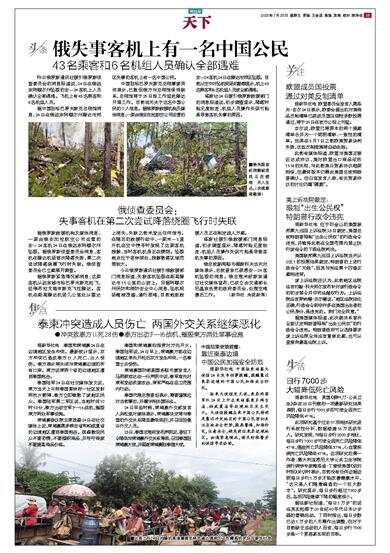 俄失事客机上有一名中国公民