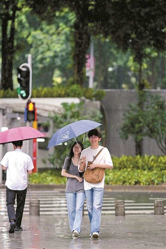 ■8月3日,在天河区科韵中路,市民们冒雨出行。新快报记者 郭思杰/摄 |