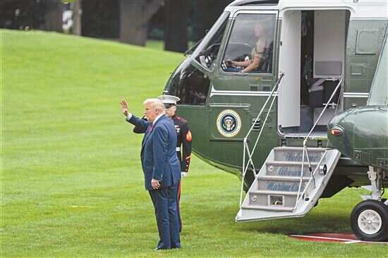 ■8月1日,在美国首都华盛顿白宫,美国总统特朗普准备登机。新华社发 |