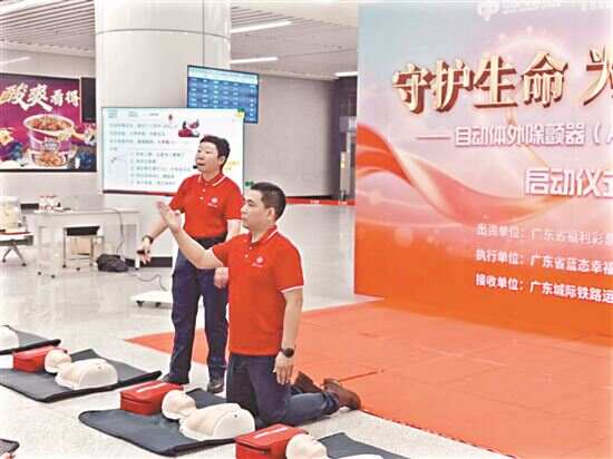 新快报讯 记者刘奕娴 陆妍思 通讯员粤福彩报道 7月30日,39台自动体外除颤器(AED)布设仪式正式启动。新快报记者了解到,本次布设的39台AED设备由广东省福利彩票发行中心资助,广东省蓝态幸福文化公益基金会负责安装、培训等相关工作,9月底前将实现广惠、广肇和广清城际所有车站AED全覆盖,将在大湾区轨道交通网进一步构建“黄金4分钟”生命救援圈。 当天下午,2025年“公益福彩 助在身边”公益项目——“守护生命,为爱护航”自动体外除颤器(AED)布设启动仪式在广东省福利彩票发行中心、蓝态公益基金会以及媒体记者的共同见证下正式启动,标志着广东福彩和蓝态公益进一步践行“生命至上”的理念和为民服务的宗旨。39台AED设备安装到位后,广惠、广肇和广清城际将实现AED设备全覆盖。早在2021年9月,广东福彩和蓝态公益基金会就参与助力广州地铁AED实现全线路覆盖,截至目前,广州地铁站内,AED已经成功挽救了22位患者的生命。 广东城际铁路运营有限公司相关负责人向两家爱心单位的善举表达感谢。 据了解,自动体外除颤器(AED)是一种在急救场合下帮助患者恢复心率的医疗设备,在最佳抢救时间的“黄金4分钟”内,使用AED对患者进行除颤和心肺复苏可以有效挽救心搏骤停患者的生命。AED的特点是操作简单、方便携带,可以在紧急情况下最大限度增加挽救生命的概率。 启动仪式结束后,蓝态AED急救行动党员志愿服务队为广东城际工作人员开展了心肺复苏和AED使用公益培训,通过“理论+实践”双轨培训模式,确保全员熟悉急救要点。 截至目前,“公益福彩 助在身边”公益项目及蓝态公益基金会已累计为广东城际培训超过两百名员工,通过实操考核让员工熟练掌握急救技能,形成“设备全覆盖+人员全培训”的双重保障体系。
