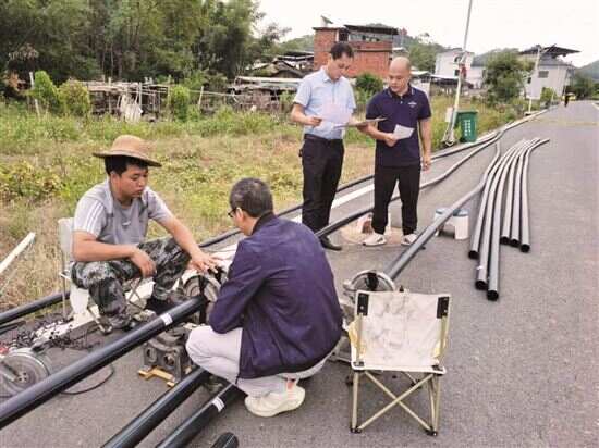 工作队查看悦来村至三和村自来水管网施工现场。 |