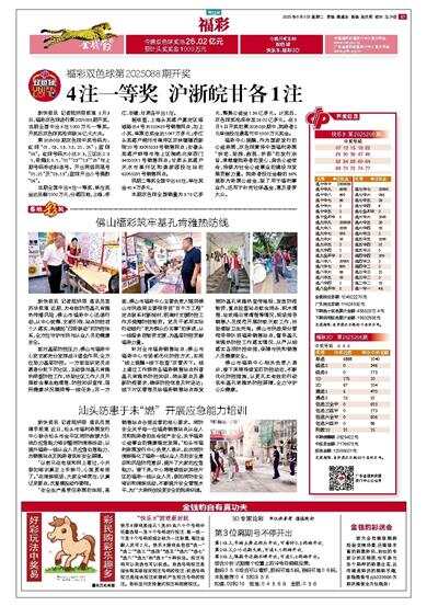 福彩双色球第2025088期开奖 新快报讯 记者陆妍思报道 8月3日,福彩双色球进行第2025088期开奖,当期全国中出4注1000万元一等奖。开奖后双色球奖池突破26亿元大关。 第