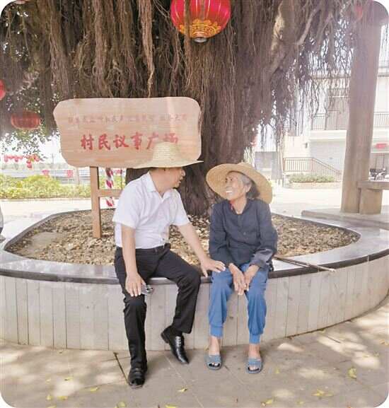 ■陈永华在那柳村与老党员彭秀清聊历史、话发展。 |