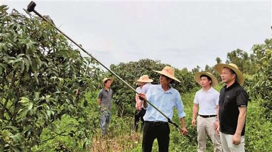 ■谭浩泉(右二)走访龙潭村荔枝产业种植培训示范基地。 |