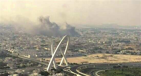 ■9日,多哈北部的袭击现场,浓烟四起。(来源:央视新闻) |