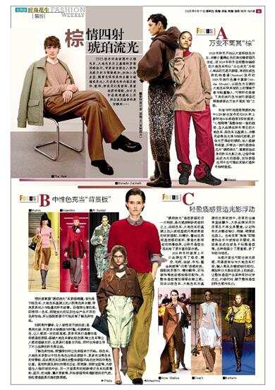 2025秋冬时尚语境中以棕色系、大地色系为主基调的穿搭持续流行,审美语言被注入新的光感交织与情绪感知,如加入浅灰蓝、鹅黄色等明亮的点缀与碰撞或是注入灵动亮色的内搭及配件、配饰,抑或是闪亮面料、亮